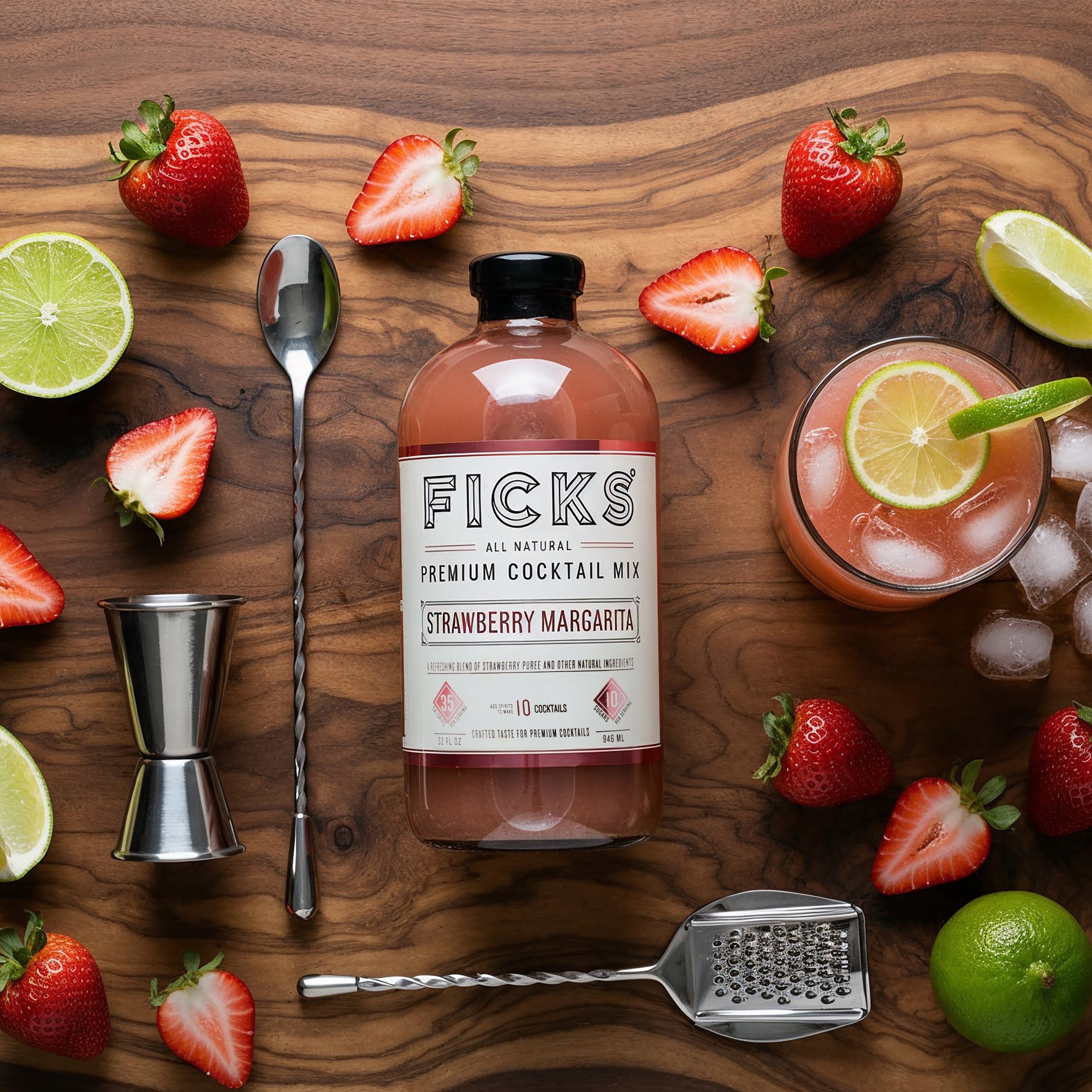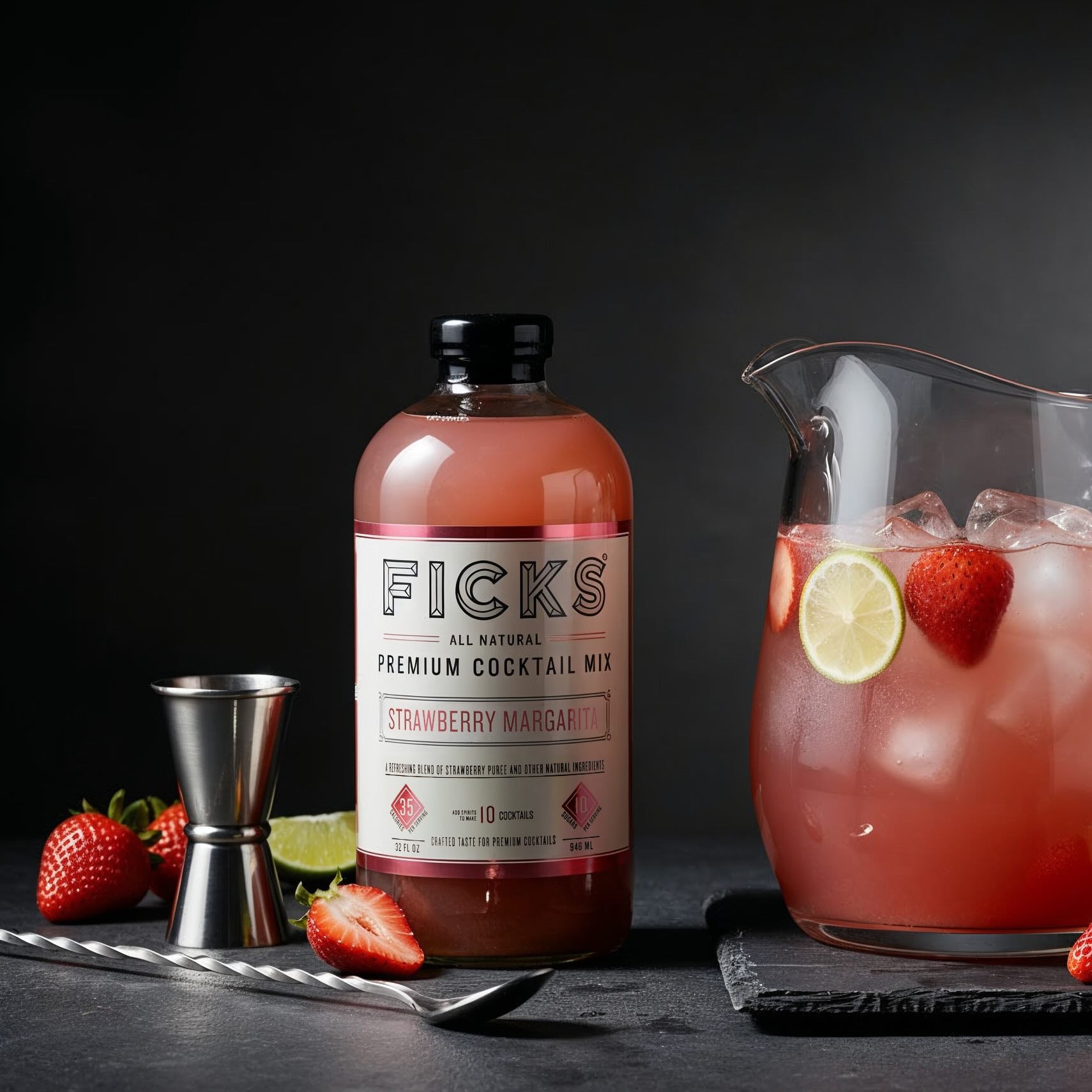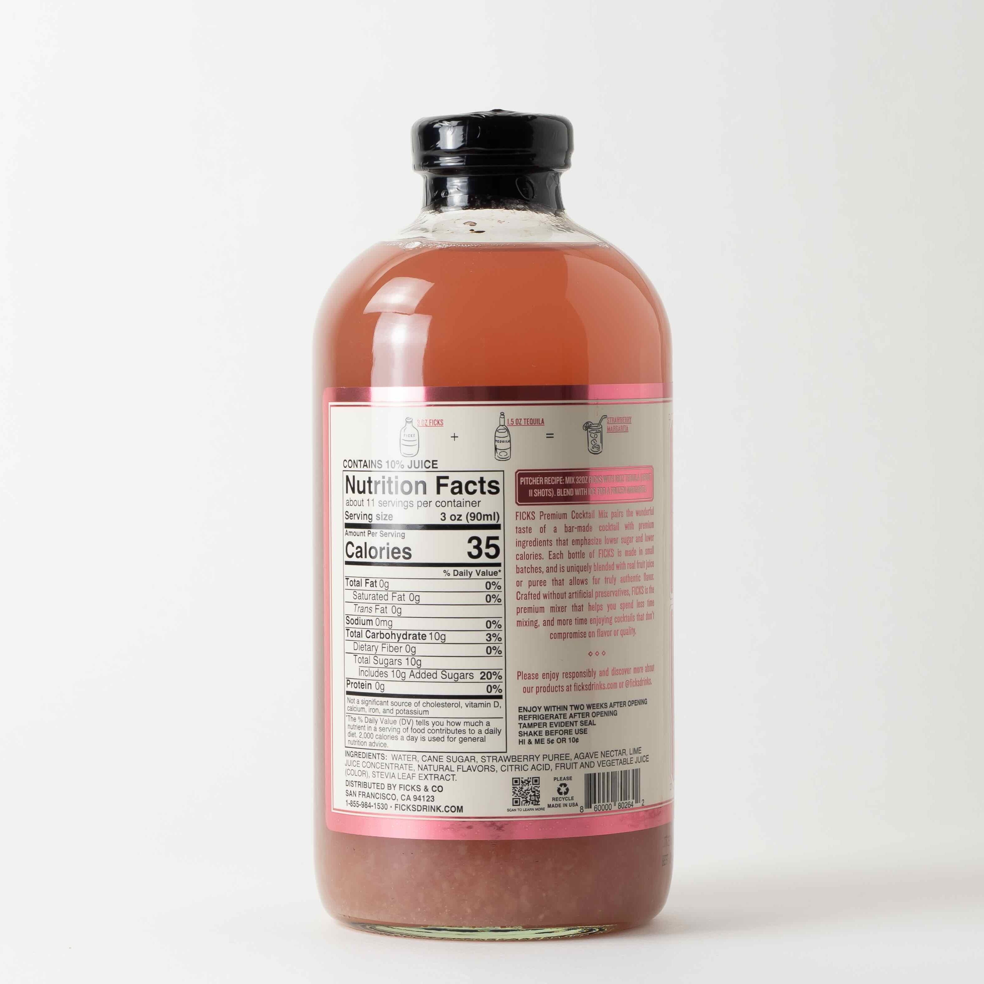 A sweet strawberry purée and not from concentrate Mexican limes give this low sugar margarita cocktail a pleasant strawberry twist. Mix with your favorite tequila for a low sugar strawberry margarita in seconds, or sip straight over ice for a sweet non-alcoholic cocktail. Made with all natural ingredients and real juice for craft cocktail taste. Each bottle of FICKS Strawberry Margarita Cocktail Mix makes about 10 cocktails.