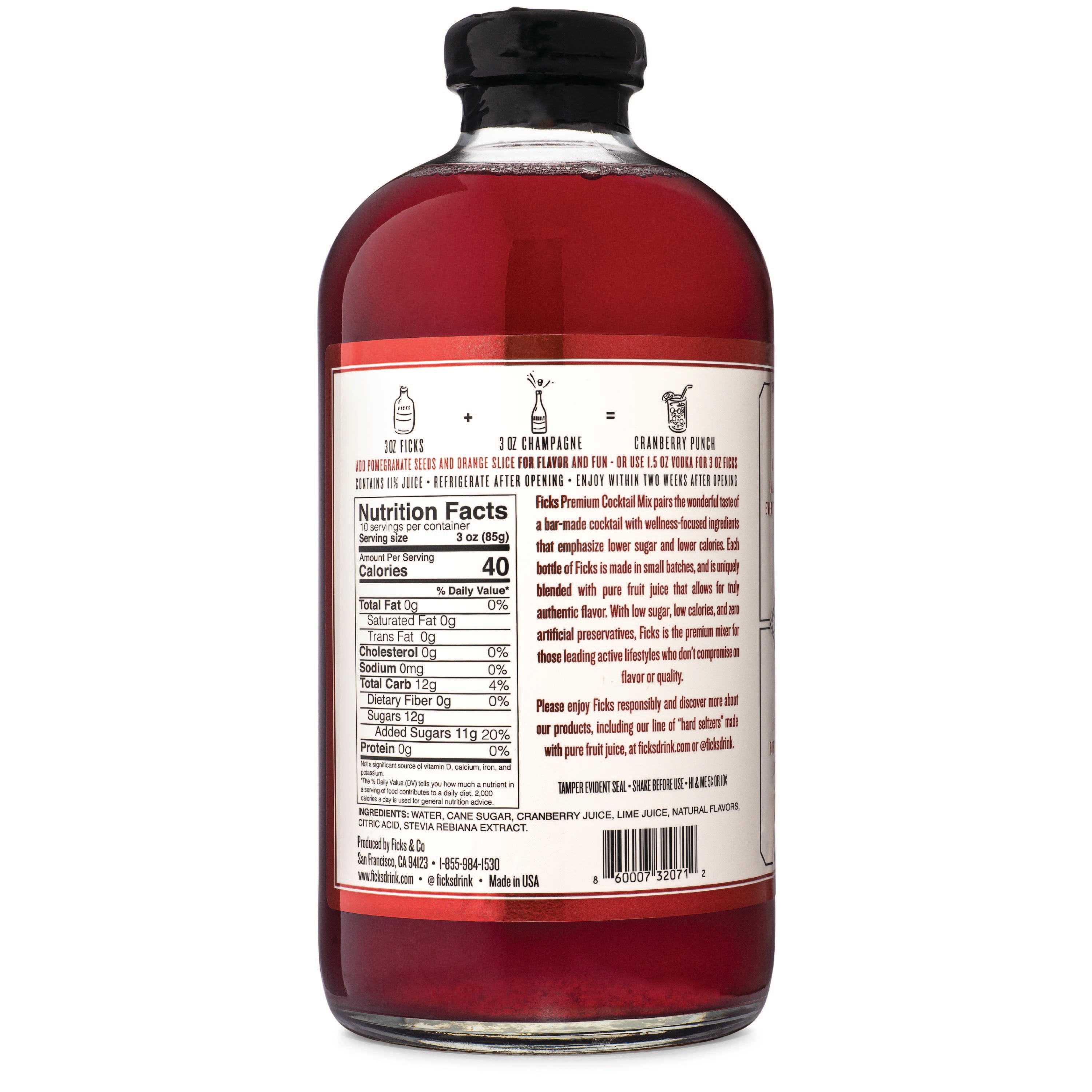 Each bottle of FICKS Cranberry Punch Cocktail Mix makes about 10 cocktails, and is about half the sugar and calories of other all natural cocktail mix.
